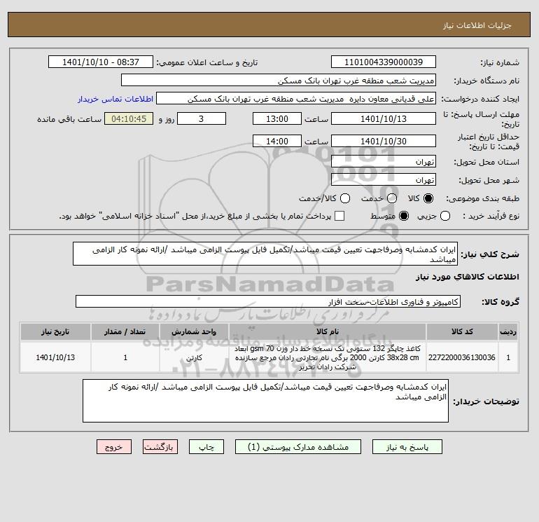 نام دستگاه خریدار:مدیریت شعب منطقه غرب تهران بانک مسکن