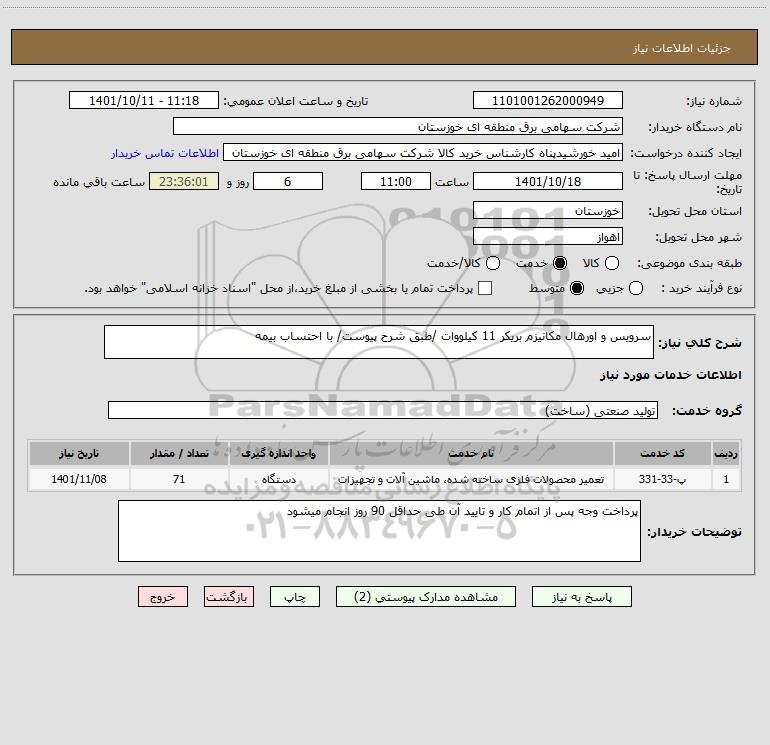 شرح کلی نیاز: سرویس و اورهال مکانیزم بریکر 11 کیلووات /طبق شرح پیوست/ با احتساب بیمه