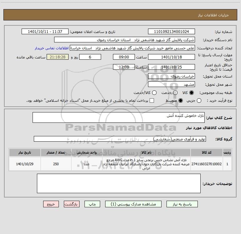 نام دستگاه خریدار:شرکت پالایش گاز شهید هاشمی نژاد استان خراسان رضوی