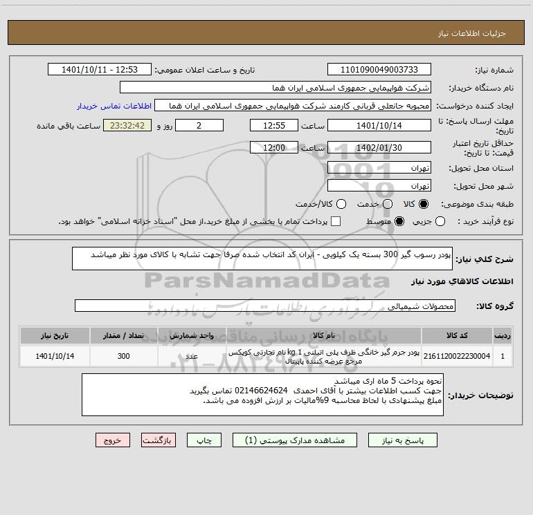 نام دستگاه خریدار:شرکت هواپیمایی جمهوری اسلامی ایران هما