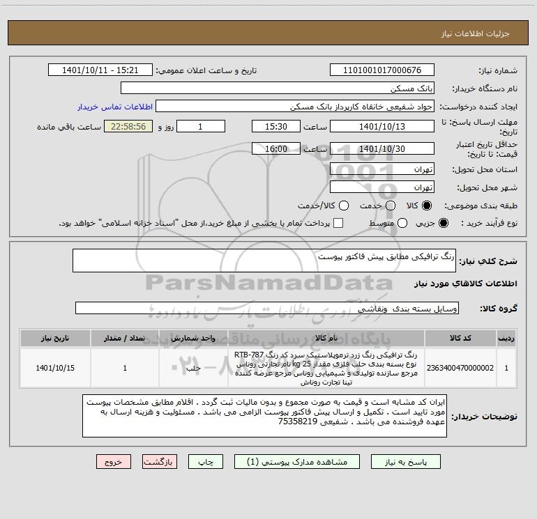 شرح کلی نیاز: رنگ ترافیکی مطابق پیش فاکتور پیوست