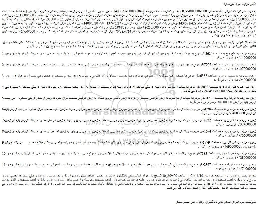 مزایده فروش تعداد11قطعه زمین زراعی , مزایده فروش تعداد11قطعه زمین زراعی