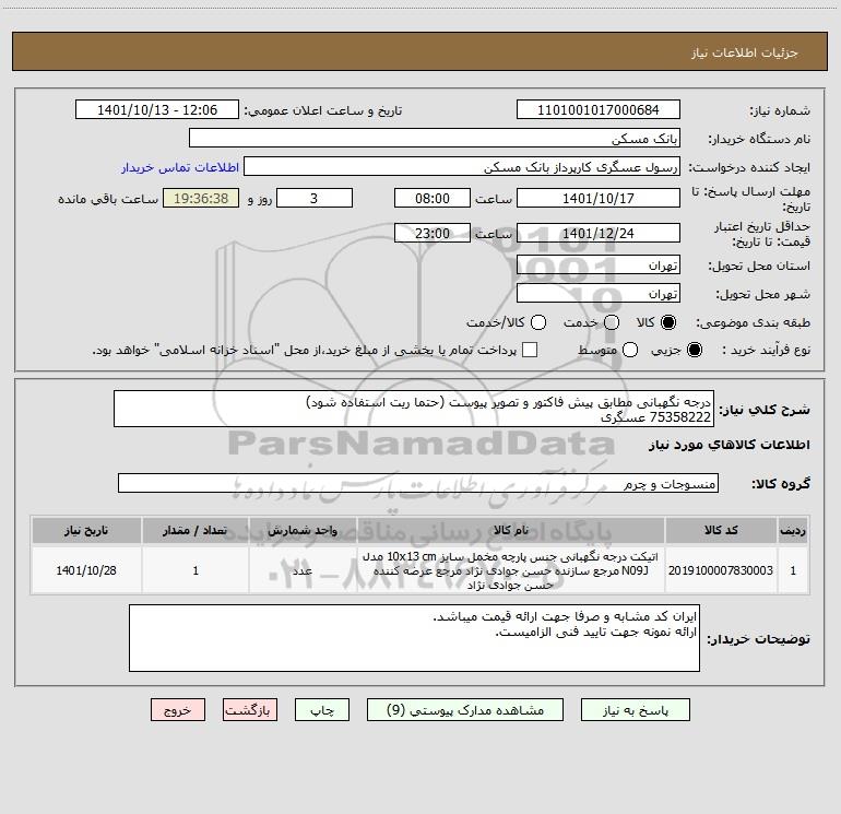 توضیحات خریدار:ایران کد مشابه و صرفا جهت ارائه قیمت میباشد. ارائه نمونه جهت تایید فنی الزامیست.