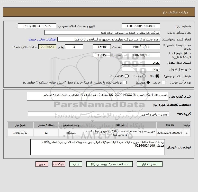 نام دستگاه خریدار:شرکت هواپیمایی جمهوری اسلامی ایران هما