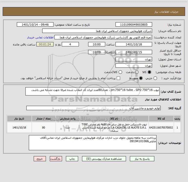 شرح کلی نیاز: تیوب pn:750*16 tube ، GPU 750*16 ، تعداد80عدد ایران کد انتخاب شده صرفا جهت تشابه می باشد.