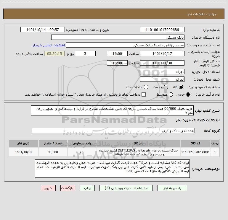 شرح کلی نیاز: خرید تعداد 90/000 عدد ساک دستی پارچه ای طبق مشخصات مندرج در قراردا و پیشفاکتور و تصویر پارچه نمونه