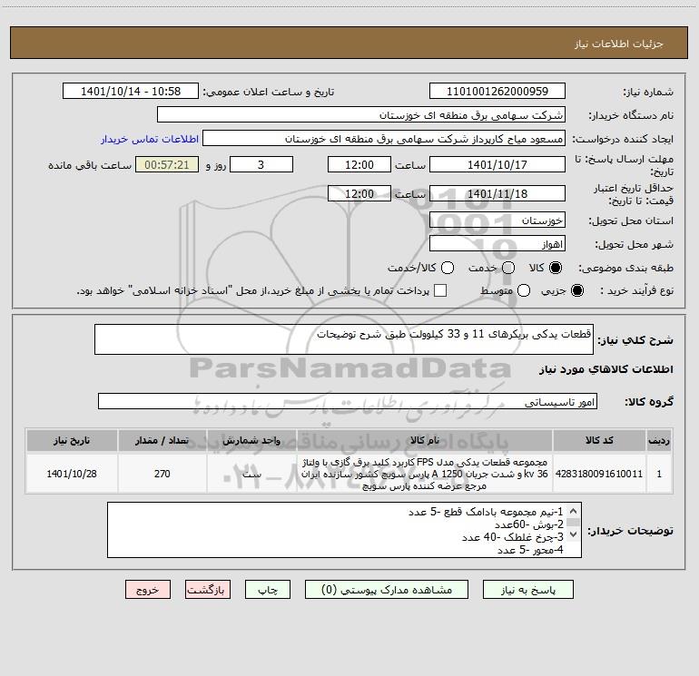 شرح کلی نیاز: قطعات یدکی بریکرهای 11 و 33 کیلوولت طبق شرح توضیحات