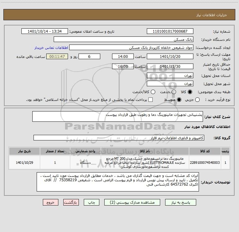 شرح کلی نیاز: پشتیبانی تجهیزات مانیتورینگ دما و رطوبت طبق قرارداد پیوست