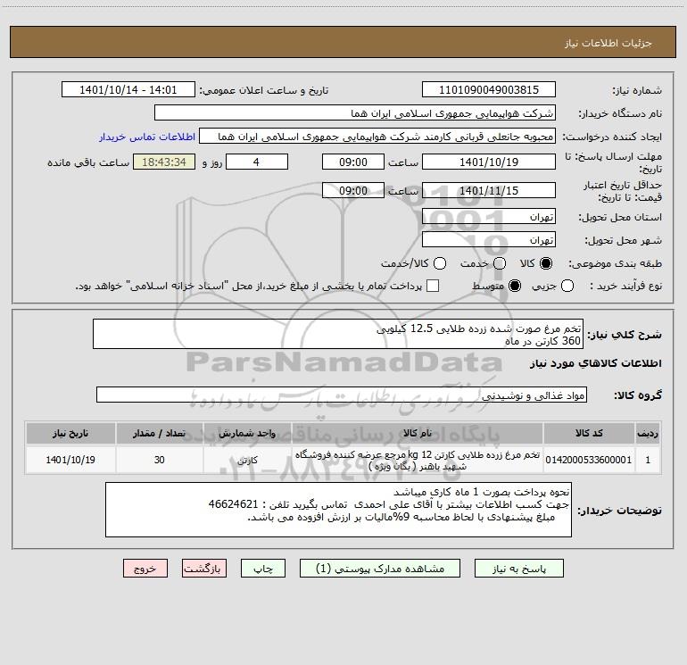 شرح کلی نیاز: تخم مرغ صورت شده زرده طلایی 12.5 کیلویی