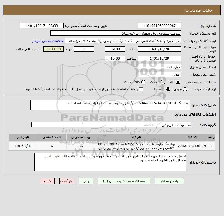شرح کلی نیاز: بوشینگ 1250A--CTE:--145K NGB1 // طبق شرح پیوست // ایران کدمشابه است