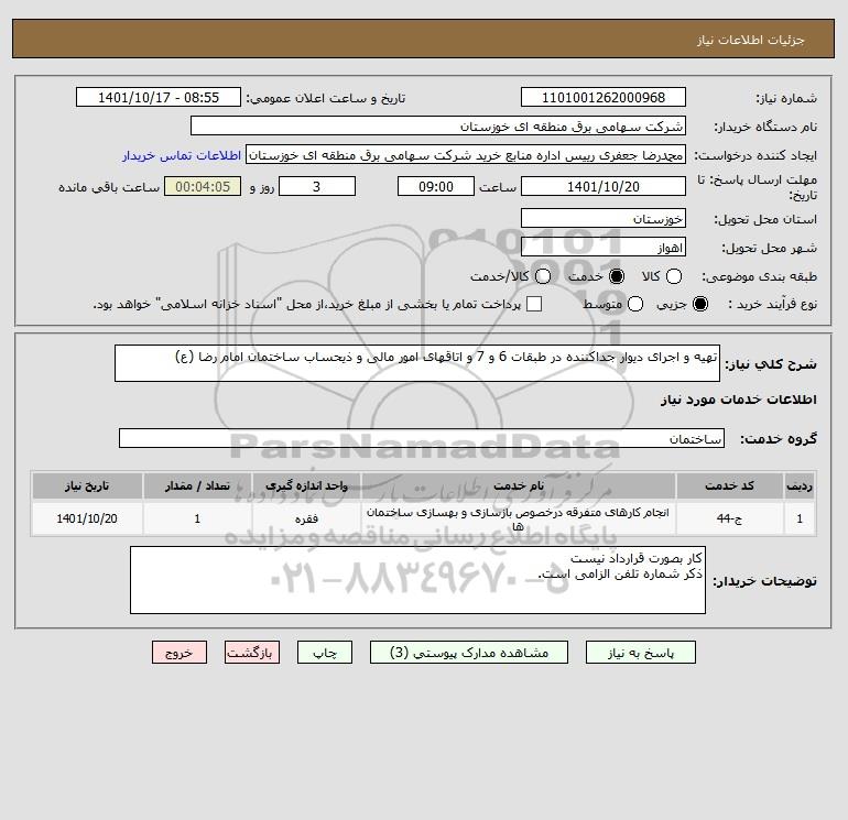 نام دستگاه خریدار:شرکت سهامی برق منطقه ای خوزستان