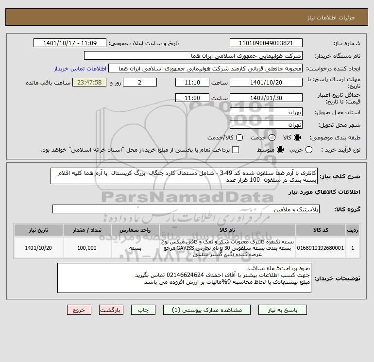 نام دستگاه خریدار:شرکت هواپیمایی جمهوری اسلامی ایران هما