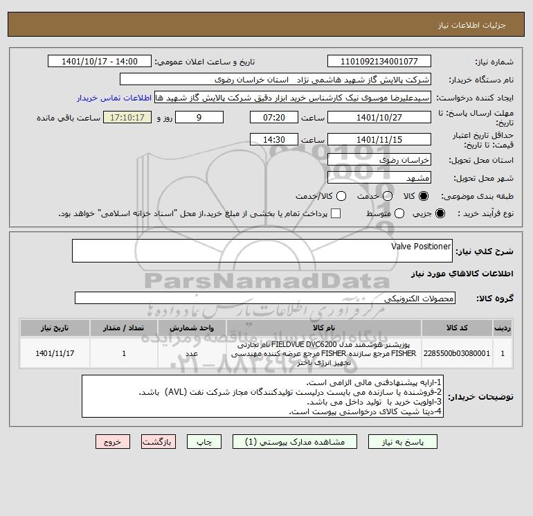 نام دستگاه خریدار:شرکت پالایش گاز شهید هاشمی نژاد استان خراسان رضوی