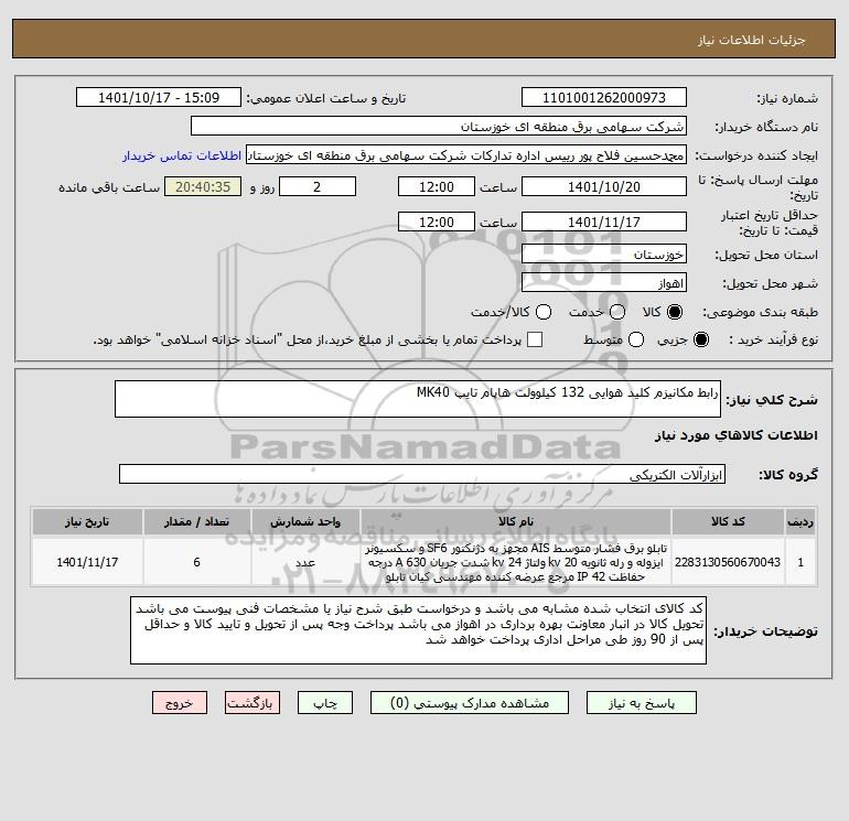 شرح کلی نیاز: رابط مکانیزم کلید هوایی 132 کیلوولت هاپام تایپ MK40