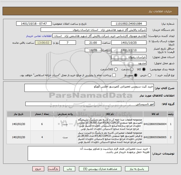 استعلام خرید کیت سرویس تعمیراتی کمپرسور اطلس کوپکو, استعلام خرید کیت سرویس تعمیراتی کمپرسور اطلس کوپکو
