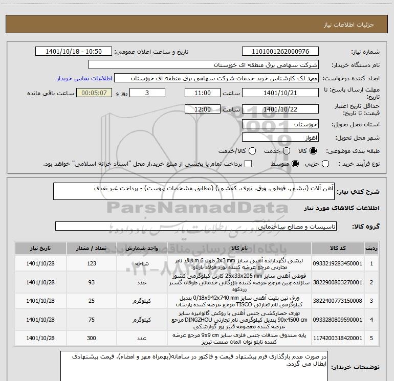 6 استعلام مواد فلزی 9811251 1404/08/17 new special not payed خوزستان