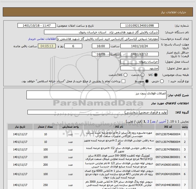 نام دستگاه خریدار:شرکت پالایش گاز شهید هاشمی نژاد استان خراسان رضوی