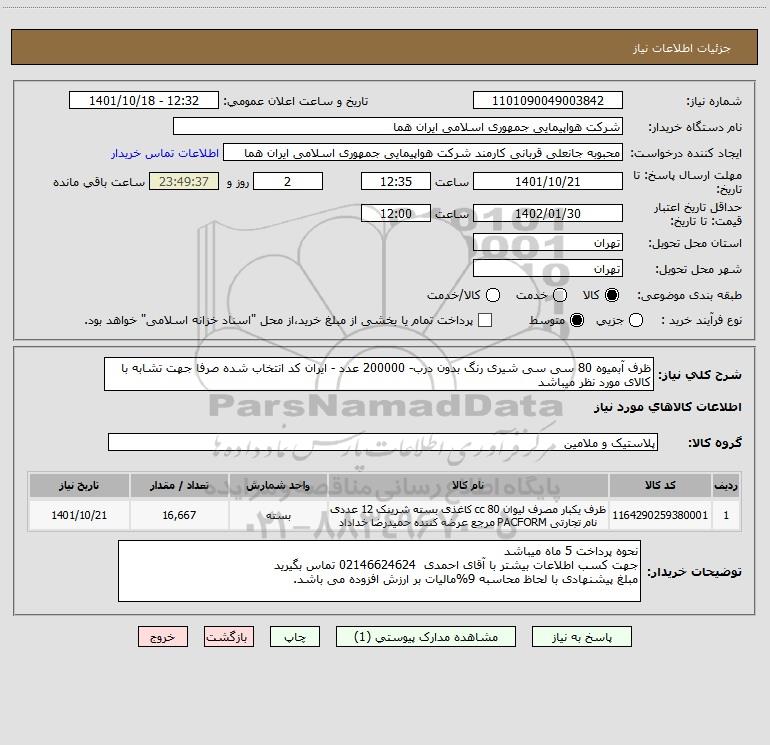 نام دستگاه خریدار:شرکت هواپیمایی جمهوری اسلامی ایران هما
