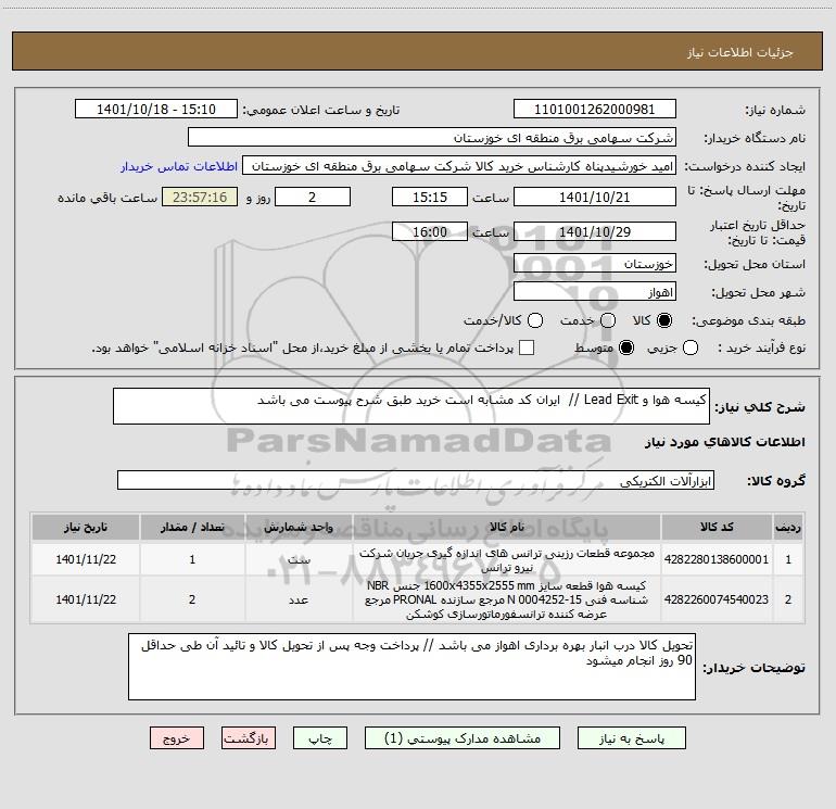 استعلام کیسه هوا و Lead Exit // ایران کد مشابه است خرید طبق شرح پیوست می باشد, استعلام کیسه هوا و Lead Exit // ایران کد مشابه است خرید طبق شرح پیوست می باشد