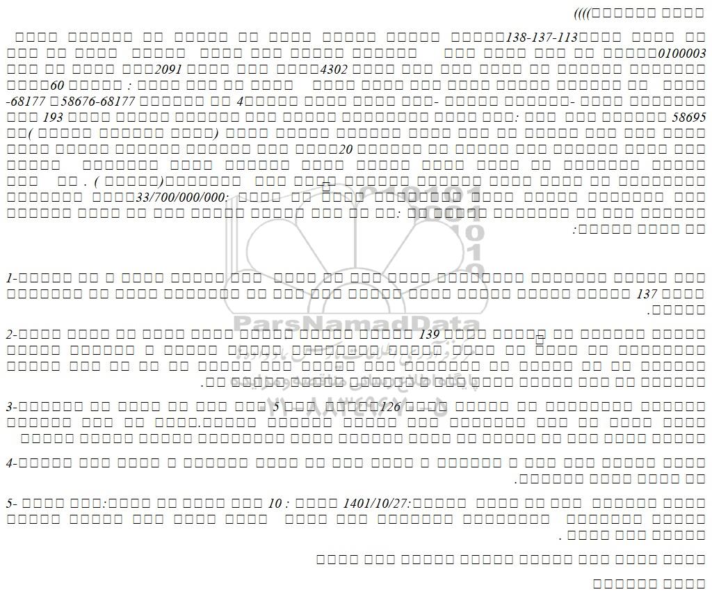 تمام آگهی ها طبق نمونه تصویر آگهی صرفا جهت اطلاع رسانی می باشد در خصوص استفاده از این آگهی هر گونه مسئولیت پرداخت به آگهی دهنده و بررسی و احراز هویت به عهده شرکت کنندگان می باشد و پایگاه خبری پارس نماد هیچگونه منفعت و مسئولیتی بابت تعهد این آگهی ندارد.