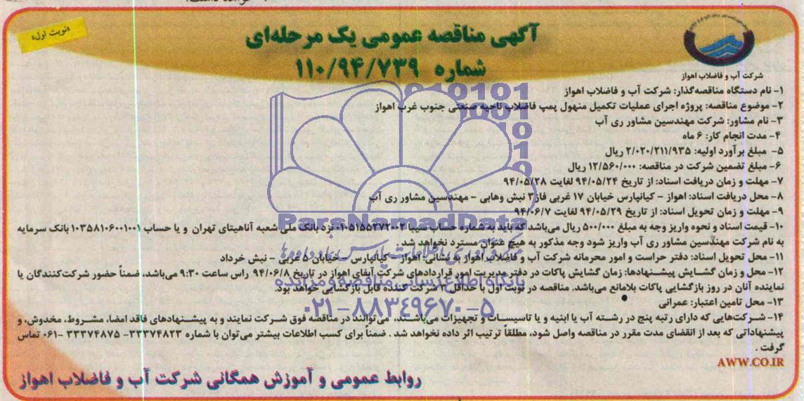 نام دستگاه مناقصه گزار: شرکت آب و فاضلاب اهواز