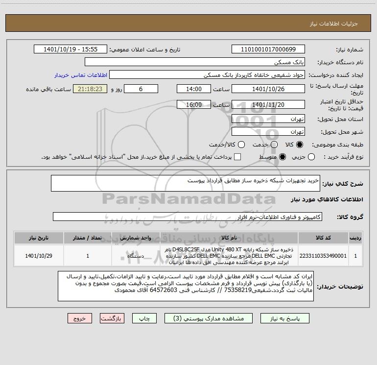 شرح کلی نیاز: خرید تجهیزات شبکه ذخیره ساز مطابق قرارداد پیوست