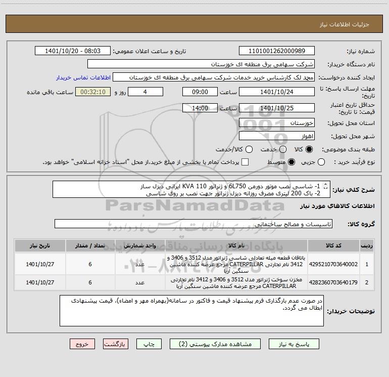استعلام 1- شاسی نصب موتور دورمن 6L750 و ژنراتور 110 KVA ایرانی دیزل ساز 2- باک 200 لیتری مصرف روزانه دیزل ژنراتور جهت نصب بر روی شاسی, استعلام 1- شاسی نصب موتور دورمن 6L750 و ژنراتور 110 KVA ایرانی دیزل ساز 2- باک 200 لیتری مصرف روزانه دیزل ژنراتور جهت نصب بر روی شاسی