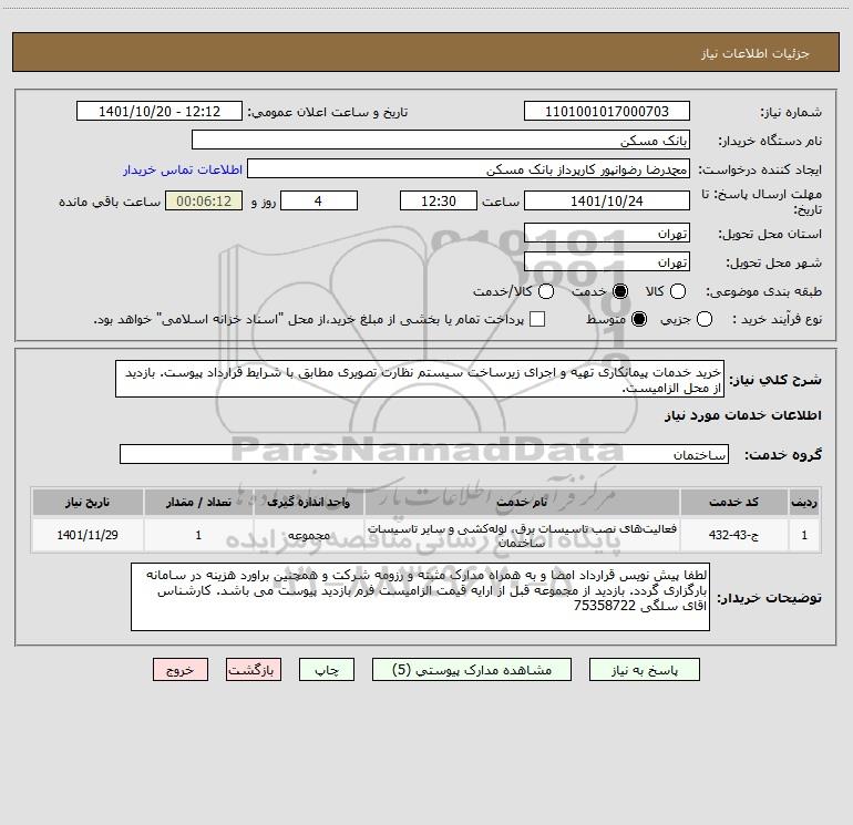 استعلام خرید خدمات پیمانکاری تهیه و اجرای زیرساخت سیستم نظارت تصویری مطابق با شرایط قرارداد پیوست. بازدید از محل الزامیست., استعلام خرید خدمات پیمانکاری تهیه و اجرای زیرساخت سیستم نظارت تصویری مطابق با شرایط قرارداد پیوست. بازدید از محل الزامیست.