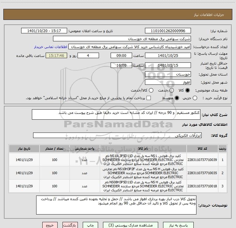 نام دستگاه خریدار:شرکت سهامی برق منطقه ای خوزستان