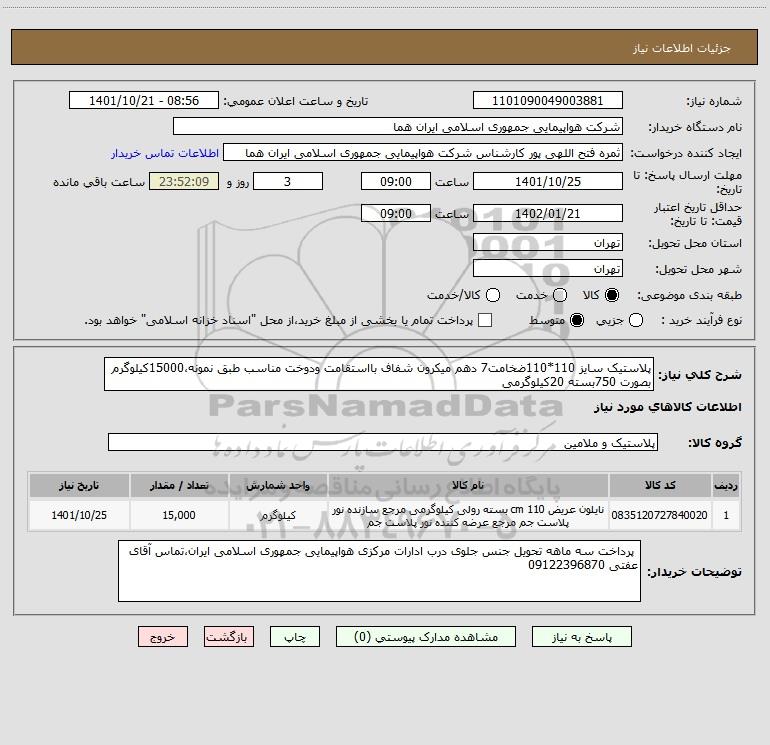 نام دستگاه خریدار:شرکت هواپیمایی جمهوری اسلامی ایران هما