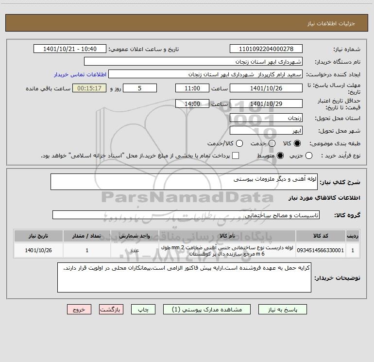 استعلام لوله آهنی و دیگر ملزومات پیوستی, استعلام لوله آهنی و دیگر ملزومات پیوستی