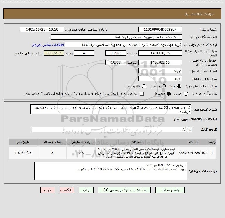 نام دستگاه خریدار:شرکت هواپیمایی جمهوری اسلامی ایران هما