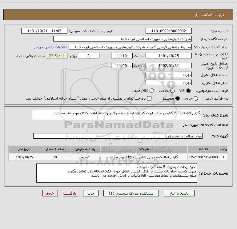 نام دستگاه خریدار:شرکت هواپیمایی جمهوری اسلامی ایران هما