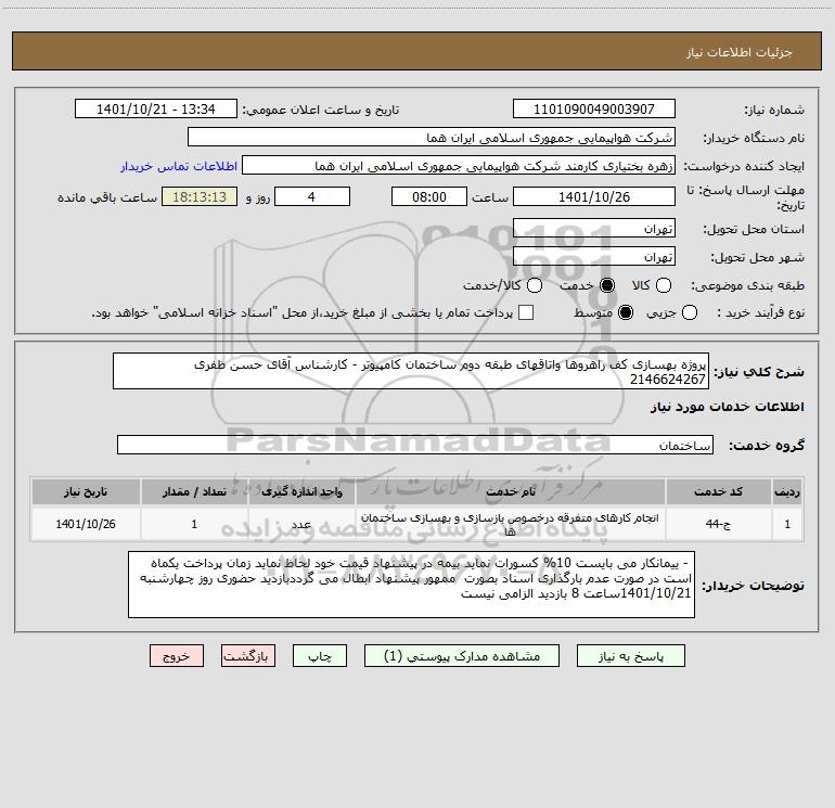 نام دستگاه خریدار:شرکت هواپیمایی جمهوری اسلامی ایران هما
