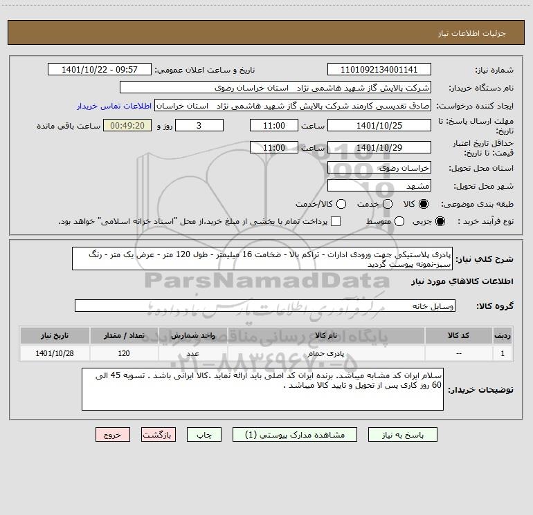 نام دستگاه خریدار:شرکت پالایش گاز شهید هاشمی نژاد استان خراسان رضوی