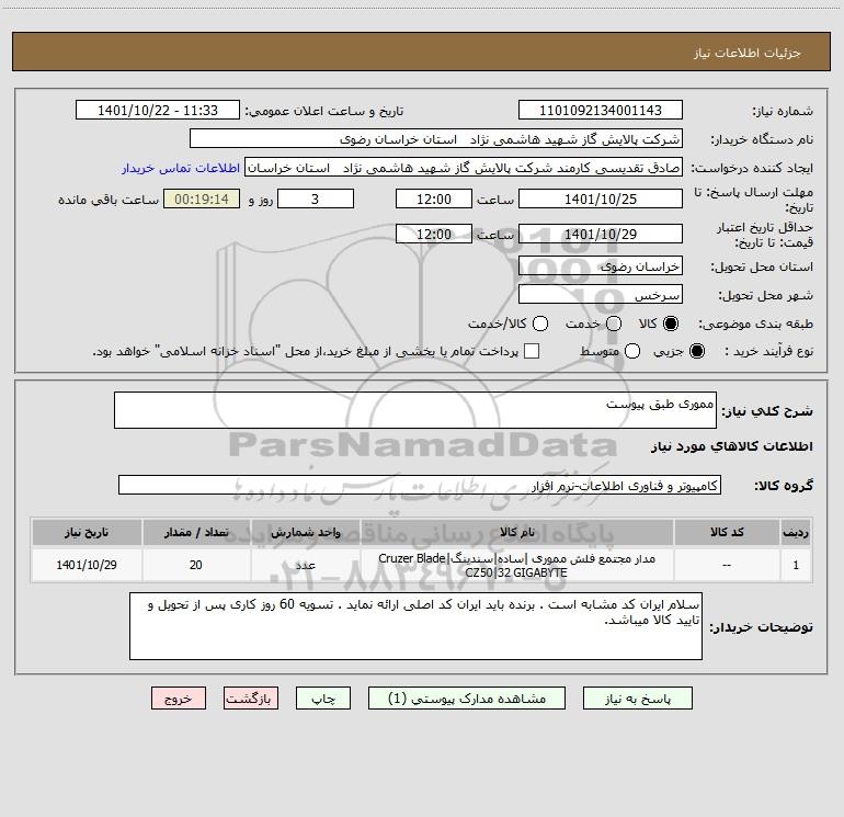 نام دستگاه خریدار:شرکت پالایش گاز شهید هاشمی نژاد استان خراسان رضوی