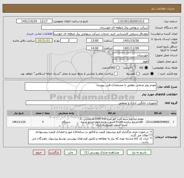 نام دستگاه خریدار:شرکت سهامی برق منطقه ای خوزستان