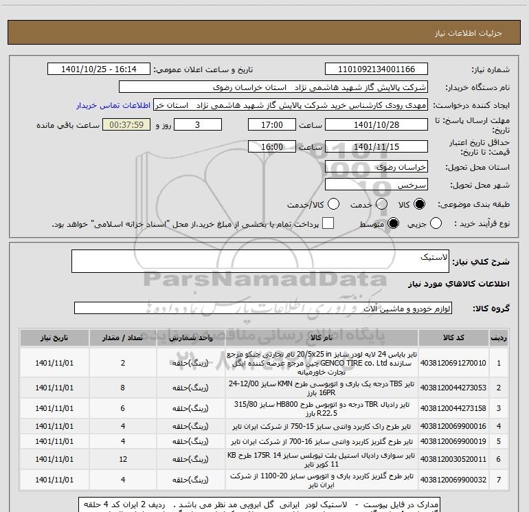 نام دستگاه خریدار:شرکت پالایش گاز شهید هاشمی نژاد استان خراسان رضوی