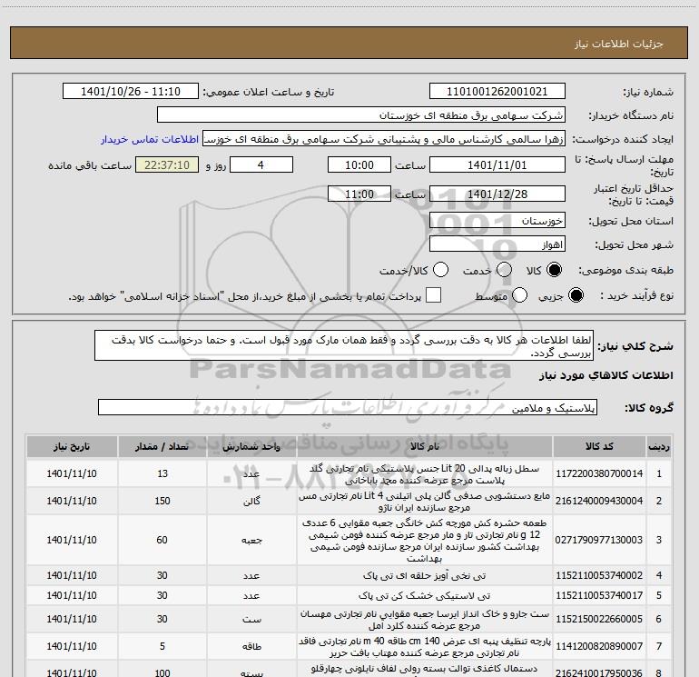 شماره نیاز: 1101001262001021
