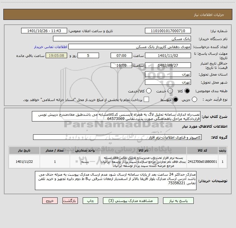 شرح کلی نیاز: نصب،راه اندازی سامانه تحلیل لاگ به همراه لایسنس کدکالامشابه می باشدطبق مفادمندرج درپیش نویس قراردادکلیه مراحل باهماهنگی صورت پذیرد.تماس 64573069