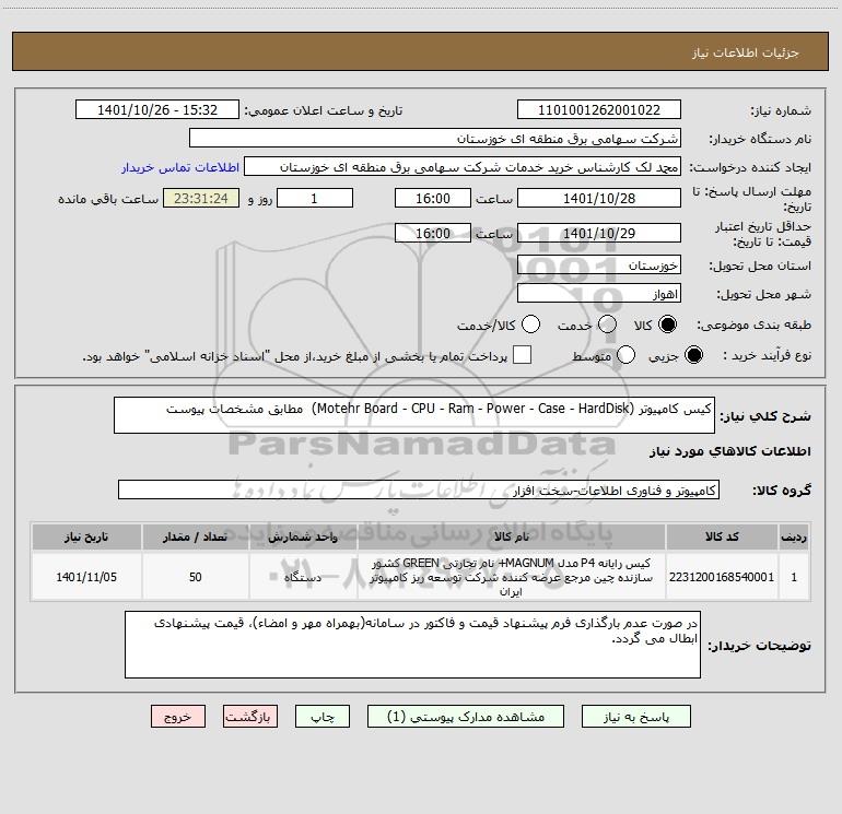 شرح کلی نیاز: کیس کامپیوتر (Motehr Board - CPU - Ram - Power - Case - HardDisk) مطابق مشخصات پیوست