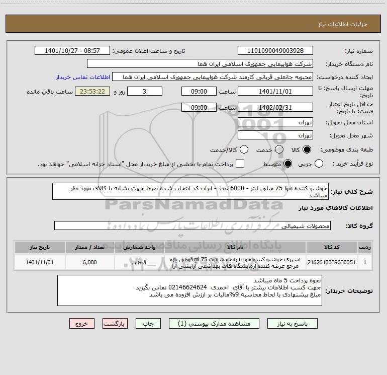نام دستگاه خریدار:شرکت هواپیمایی جمهوری اسلامی ایران هما
