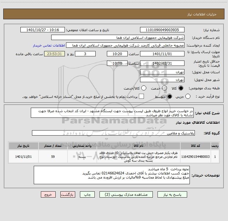 نام دستگاه خریدار:شرکت هواپیمایی جمهوری اسلامی ایران هما