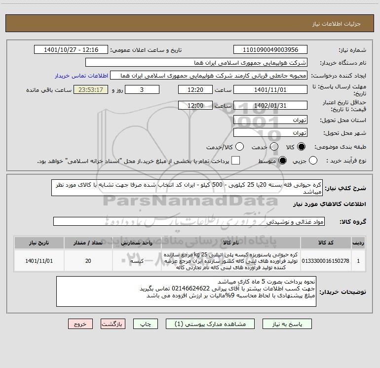 استعلام کره حیوانی فله بسته 20یا 25 کیلویی - 500 کیلو - ایران کد انتخاب شده صرفا جهت تشابه با کالای مورد نظر میباشد, استعلام کره حیوانی فله بسته 20یا 25 کیلویی - 500 کیلو - ایران کد انتخاب شده صرفا جهت تشابه با کالای مورد نظر میباشد