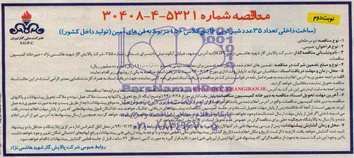 مناقصه ساخت داخلی تعداد 35 عدد شیر توپی 6 اینچ کلاس از کلیه افراد متخصص و شرکتها واجد شرایط دعوت به عمل میآید در مناقصه با کد خبرگزاری پارس نماد: 540561 شرکت نمایند.