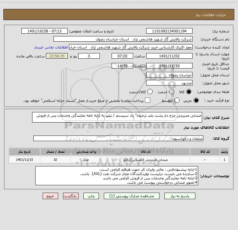 نام دستگاه خریدار:شرکت پالایش گاز شهید هاشمی نژاد استان خراسان رضوی