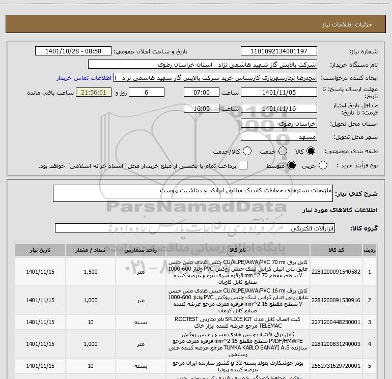 نام دستگاه خریدار:شرکت پالایش گاز شهید هاشمی نژاد استان خراسان رضوی