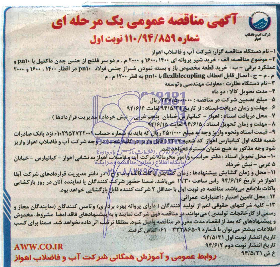 مناقصه خرید شیر پروانه ای, آگهی مناقصه عمومی یک مرحله ای,مناقصه خرید شیر پروانه ای