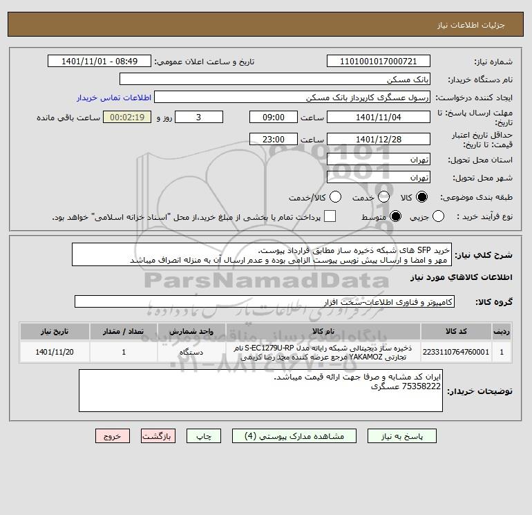 شرح کلی نیاز: خرید SFP های شبکه ذخیره ساز مطابق قرارداد پیوست. مهر و امضا و ارسال پیش نویس پیوست الزامی بوده و عدم ارسال آن به منزله انصراف میباشد