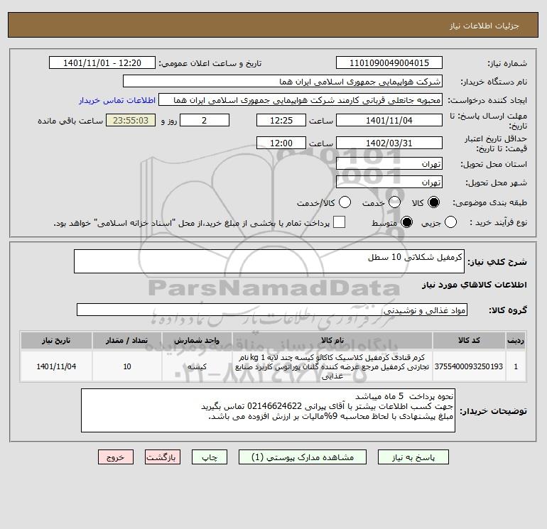 نام دستگاه خریدار:شرکت هواپیمایی جمهوری اسلامی ایران هما
